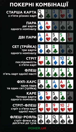 Комбінації у покері Техаський Холдем за зростанням
